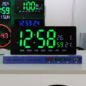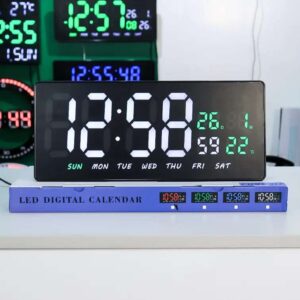 - Modern Look: If your living room has a simple and clean design with neutral colors, like a white or grey sofa, the clock’s sleek shape and bright numbers will fit in perfectly. You can choose the white and green or blue display for a cool touch.